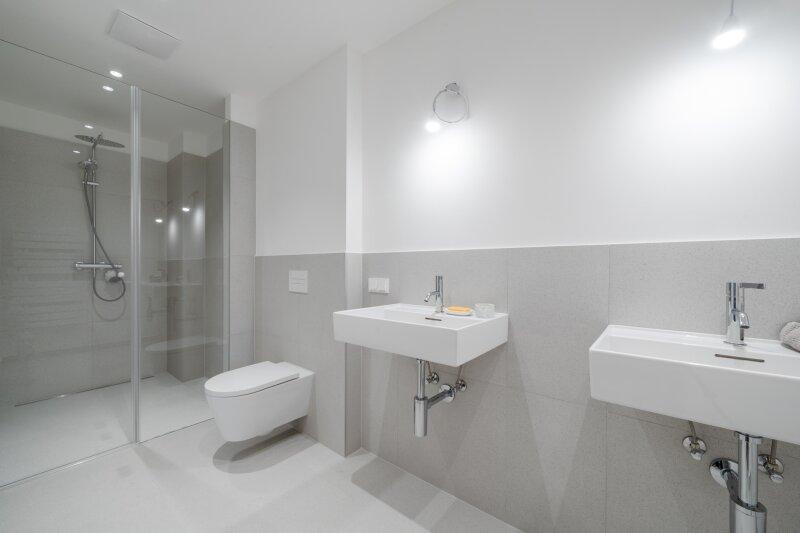 - hochwertiges Feinsteinzeug und Sanitärausstattung