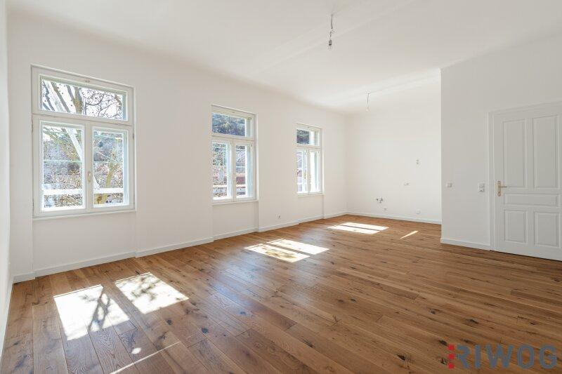 Das imposante Eckhaus mit wird komplett modernisiert, die Fassade aufwendig restauriert, die Fenster originalgetreu nachgebaut und zusätzlich werden alle Wohnungen mit zeitgemäßen, qualitativ selektierten und hochwertigen Materialen sowie neuester Technik ausgestattet. In den Rohdachboden werden 2-3 moderne Dachgeschosswohnungen mit Terrassen eingebaut. Im Altbau erhalten ausgewählte Wohnungen Terrassen, Balkone oder Gärten. Der Innenhof wird teilweise begrünt und mit 3 KFZ Stellplätzen, welche zum Kauf erhältlich sind, ausgestattet und ein Lift wird vom Keller bis zum Dachgeschoß eingebaut. Das Hofhaus wird ebenfalls wieder zum Leben erweckt und bietet einen unglaublich imposanten Blick über die Gärten direkt auf die St. Othmar Kirche.