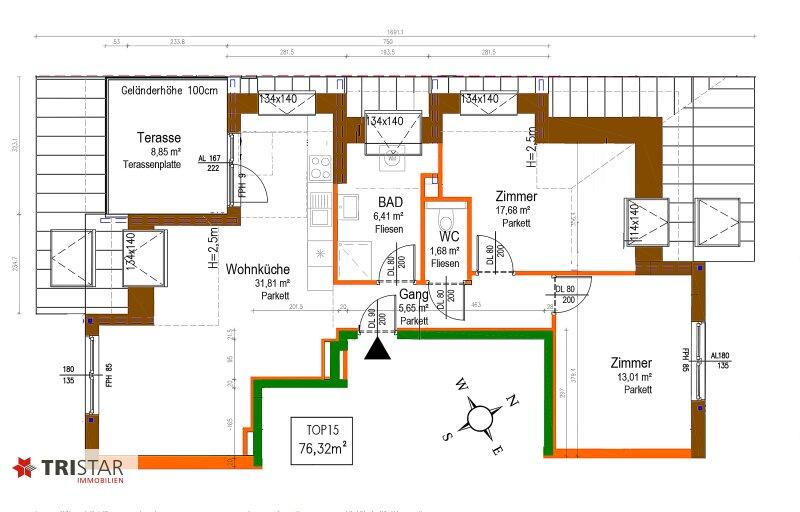 TOP 15: ca. 76,32 m² (3 Zimmer) + Terrasse ca. 9 m², Kaufpreis: EUR 499.000