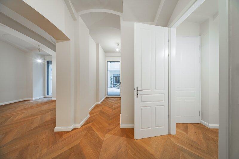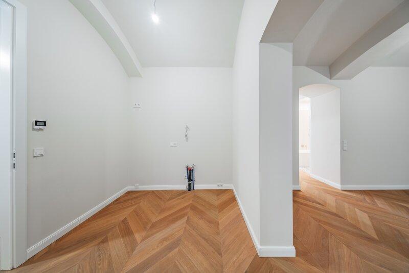 Das historische Ensemble in der Kettenbrückengasse 1 revolutioniert unser Verständnis von Raum und bildet ideale Konturen für die Verwirklichung der eigenen Individualität. Wer in Essenz No. 1 wohnt, hat Gestaltungsfreiheit wie nie zuvor. Offene Raumstrukturen lassen neue Dimensionen von Individualisierung und Maximierung entstehen. Alle Wohnräume bieten die perfekte Bühne, um der eigenen Kreativität freien Lauf zu lassen und dem persönlichen Stil Flügel zu verleihen.