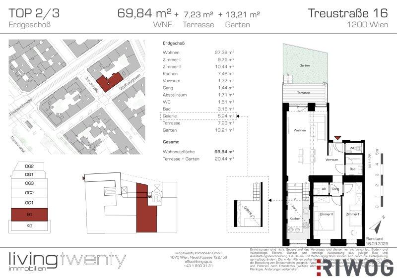 Bei TOP 2/3 handelt es sich um eine 3-Zimmer Wohnung, welche sich im Erdgeschoß/Hochparterre befindet und wie folgt aufgliedert: