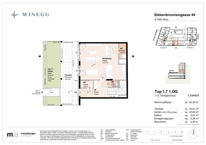 Der guten Ordnung halber halten wir fest, dass, sofern im Angebot nicht anders vermerkt, bei erfolgreichem Abschlussfall eine Provision anfällt, die den in der Immobilienmaklerverordnung BGBI. 262 und 297/1996 festgelegten Sätzen entspricht das sind 3 % des Kaufpreises zzgl. 20 % USt. Diese Provisionspflicht besteht auch dann, wenn Sie die Ihnen überlassenen Informationen an Dritte weitergeben. Es besteht ein wirtschaftliches Naheverhältnis zum Verkäufer. Wir weisen darauf hin, dass wir als Doppelmakler tätig sind. Die Vertragserrichtung und Treuhandabwicklung ist gebunden an ARNOLD Rechtsanwälte GmbH, Stoß im Himmel 1, 1010 Wien. Die Kosten betragen 1,5 % des Kaufpreises zzgl. 20 % USt. sowie Barauslagen und Beglaubigung.