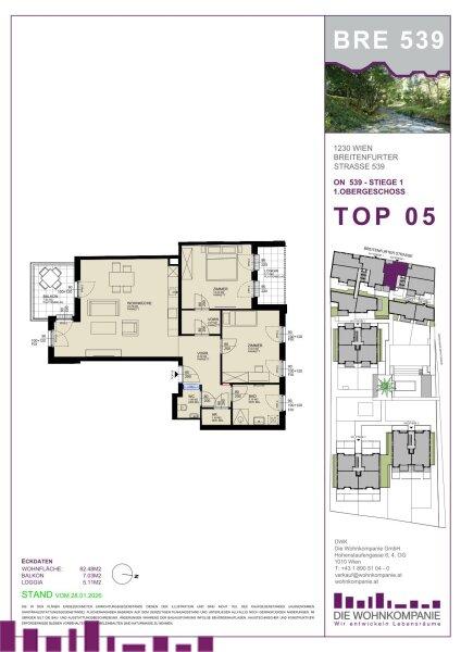 Diese großzügige und optimal aufgeteilte 3-Zimmer-Wohnung befindet sich im 1. Obergeschoss. Mit einer Wohnfläche von 82,10 m² bietet sie eine helle und angenehme Wohnatmosphäre, die durch große Fensterflächen und eine durchdachte Raumgestaltung unterstrichen wird. Die Wohnung ist barrierefrei, verfügt über einen Aufzug und bietet mit einem Balkon (7,03 m²) sowie einer Loggia (5,11 m²) gleich zwei attraktive Freiflächen für entspannte Stunden im Freien.