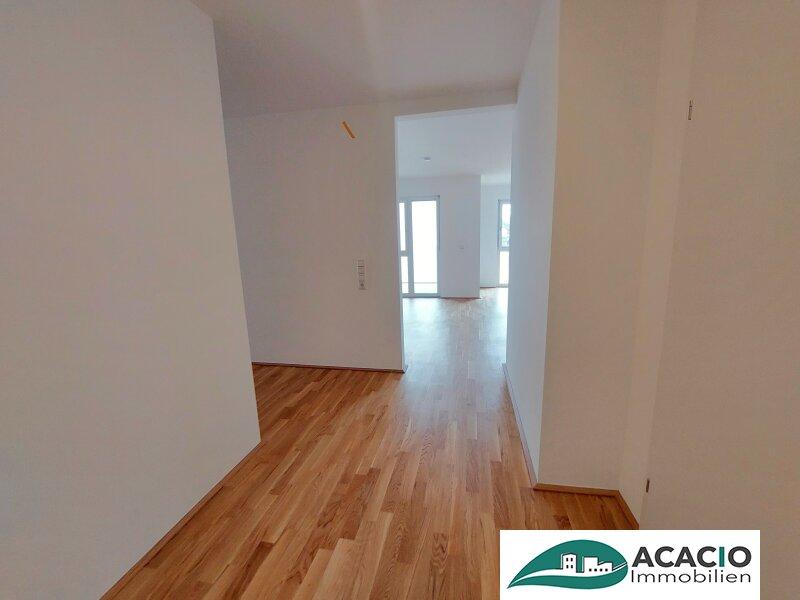 Vorraum, separates WC und Schrankraum geben zusätzlich Platz, um die wesentlichen Bereiche des Lebens strukturiert zu halten. In allen Räumen wird hochwertiger Parkettboden oder moderne Bodenfließen verlegt.