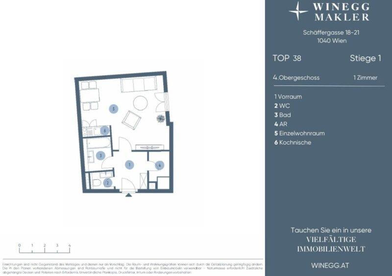 Diese Wohnung ist im 4. Liftstock gelegen und verfügt über eine Wohnfläche von ca. 35 m2.