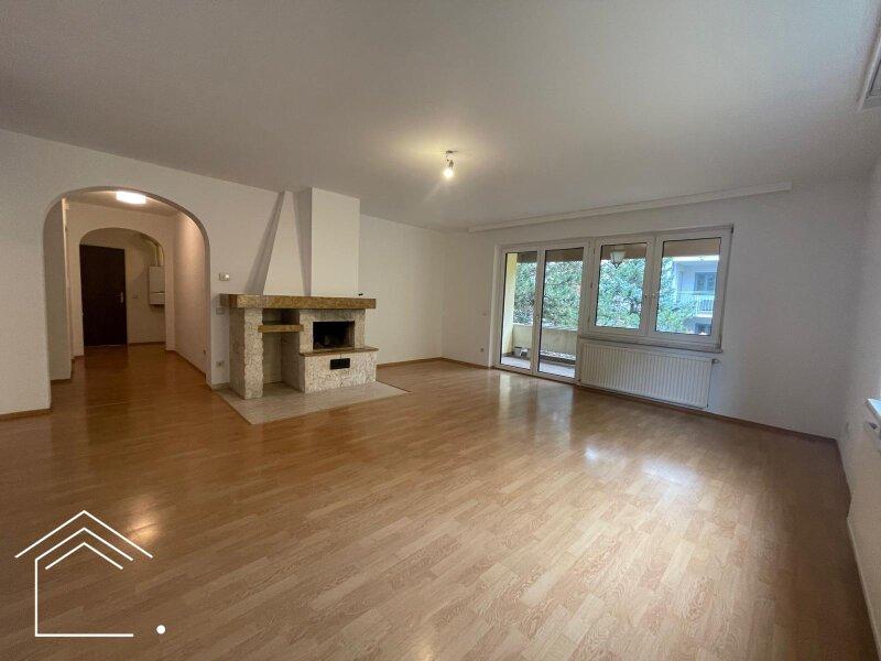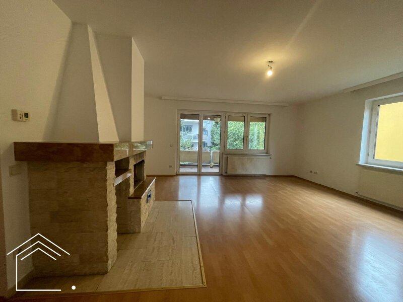 - Wohnzimmer mit offenem Kamin und Balkonzugang