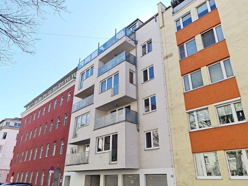 U3-NÄHE, LORYSTRASSE, 61 m2 Neubau mit 45 m2 Terrasse, 2 Zimmer, Einbauküche, Wannenbad, Garage möglich, 3. Liftstock - Objektnr. 5547402