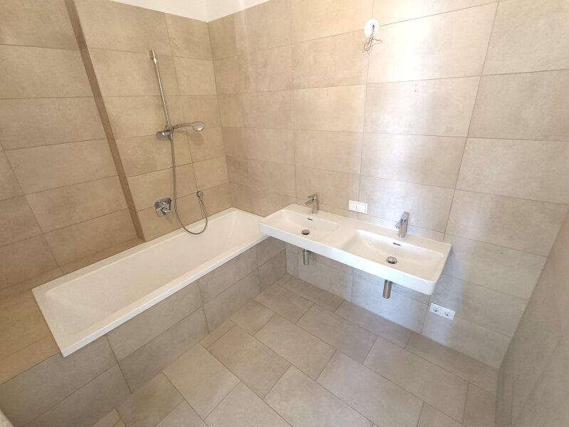 Auch sonst lässt die Wohnung keine Wünsche offen. Vom Vorraum aus erreichen Sie die separate Toilette mit Handwaschbecken, sowie das Badezimmer mit Doppel-Waschbecken, Handtuch-Heizkörper und Badewanne. Hier steht ein weiterer Abstellraum mit Anschluss für die Waschmaschine zur Verfügung.