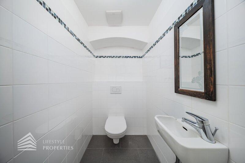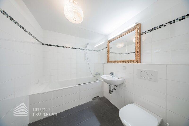 Beim Betreten der Wohnung empfängt Sie ein ca. 3 m² großer, einladender Vorraum, der einen praktischen Zugang zur separat gelegenen Toilette bietet. Linkerhand öffnet sich der Weg in die großzügige, lichtdurchflutete ca. 30 m² große Wohnküche, das Herzstück der Wohnung, das durch seine Helligkeit und Offenheit besticht. Von hier aus erreichen Sie sowohl das gemütliche Schlafzimmer als auch das stilvoll ausgestattete Badezimmer. Dieses verfügt neben einer Badewanne und einem eleganten Handwaschbecken über eine zweite Toilette ideal für zusätzlichen Komfort. Ein besonderes Highlight dieser Wohnung ist der direkte Zugang zum eigenen ca. 33 m² großen Garten mit Terrasse mit erhöhter Sitzgelegenheit ein idealer Ort zur Entspannung. Der ca. 100 Jahre alte Kastanienbaum bietet kühlenden Schatten mitten in der Stadt. Dank der ruhigen Lage in einer Einbahnstraße können Sie hier ungestört die Ruhe genießen.
