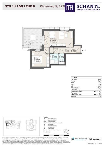 Wohnfläche: ca. 42,86m² + Terrasse: ca. 17,01m² + Kellerabteil: ca. 2,21m²