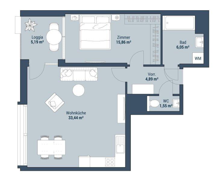 Moderne 2-Zimmer-Wohnung mit Loggia in Ruhelage 1120 Wien, Sagedergasse