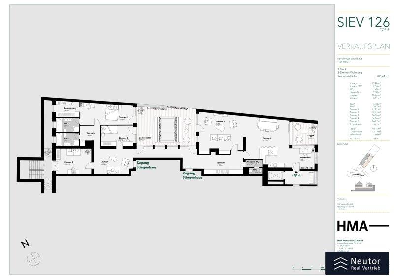 - Wohnfläche: ca. 206,36 m² (inkl. Loggia)