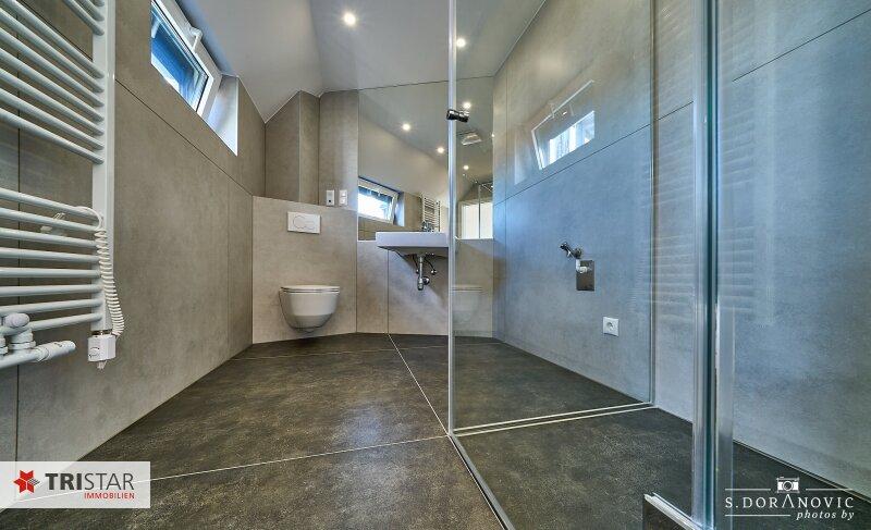 • Nassräume: Großformatige Fliesen 120×120cm (!!), Silikonfugen, Latexfarbe