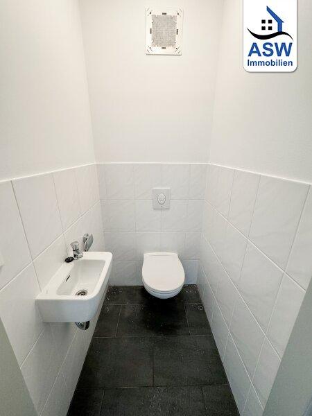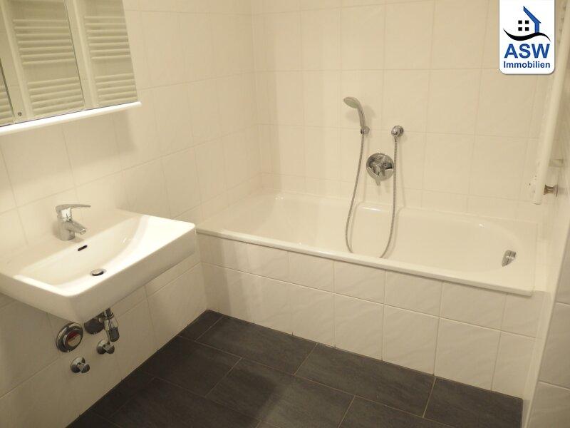 - Badezimmer mit Badewanne und Waschmaschinenanschluss und WC + WC separat