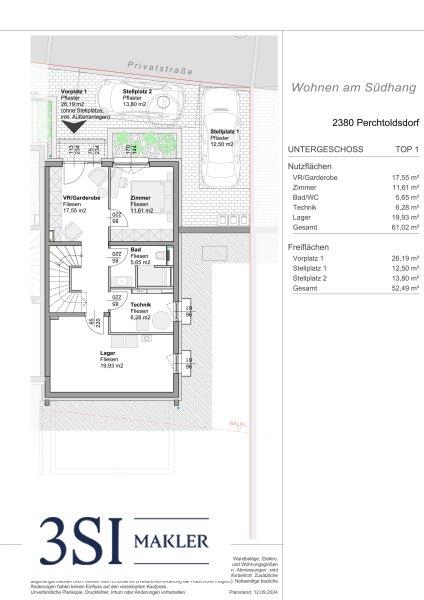 • Vorplatz  26,19 m² und 2 Stellplätze  Ihre privaten PKW-Stellplätze direkt am Haus