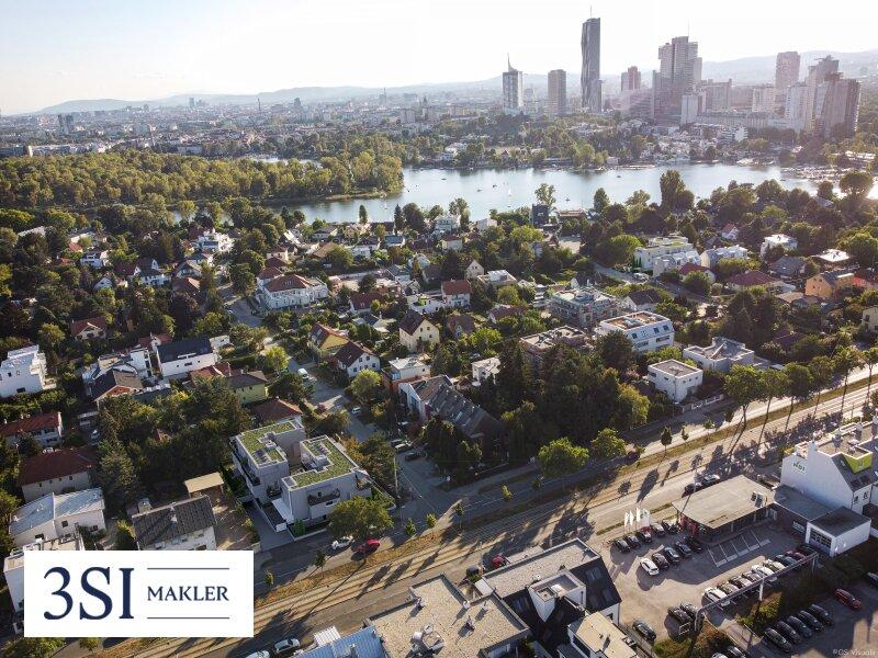 Die architektonisch außergewöhnlich konzipierte Wohnhausanlage liegt in einem der schönsten Naherholungsgebiete von Wien in Kaisermühlen an der Alten Donau, vis-à-vis des historischen Strandbads Gänsehäufel mit Blick auf die Wiener Skyline. Das Ensemble nahe der UNO-City überzeugt mit seinem stimmigen wie stimmungsvollen Wohnambiente: In zwei eleganten, L-förmig designten Gebäuden entstehen auf Baurechtsgrund des Stifts Klosterneuburg 18 neue Eigentumswohnungen mit ganz besonderem Flair moderne Erker, begrünte Steildächer und idyllische Laubengänge sowie die eigenen Gärten, Terrassen oder Balkone werden die Herzen naturbegeisterter Großstädter höher schlagen lassen, die gerne in 25 Minuten mit den Öffis am Wiener Stephansdom sein möchten.