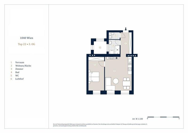 Zum Verkauf gelangt eine 2-Zimmer Wohnung im 4. Wiener Gemeindebezirk.