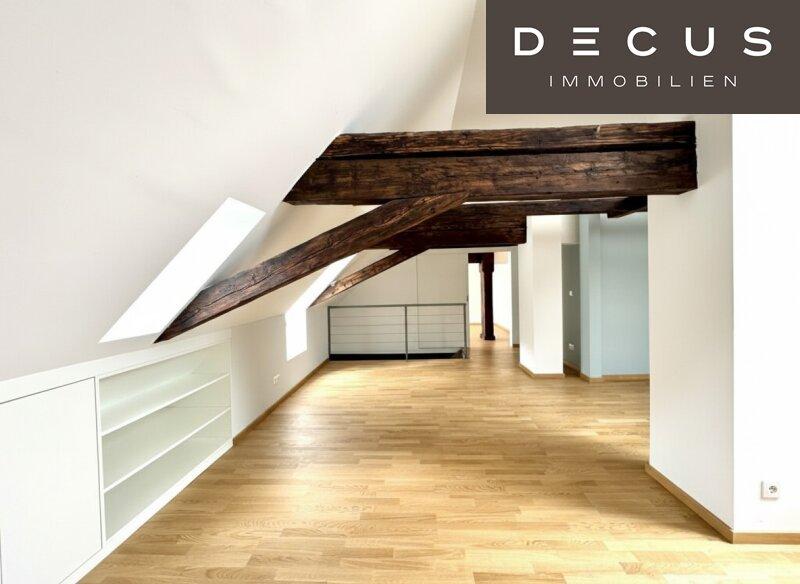 Diese außergewöhnliche 2-Zimmer-Maisonette-Wohnung mit ca. 82,16 m² Wohnfläche besticht durch ihre besondere Architektur und das großzügige Raumgefühl. Gelegen im 3. Obergeschoss eines gepflegten Altstadtpalais mit Lift, bietet sie exklusives Wohnen auf zwei Ebenen ideal für anspruchsvolle Singles oder Paare.