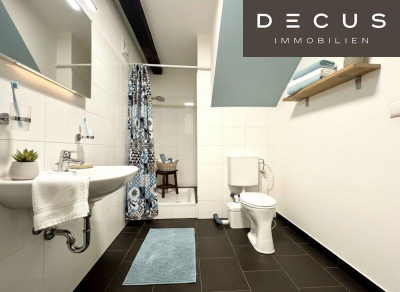 Die untere Ebene besticht durch ihre separate Küche. Über eine stilvolle Treppe gelangt man in die Dachgeschossebene, die sich ideal als Schlafzimmer oder Arbeitsbereich eignet.