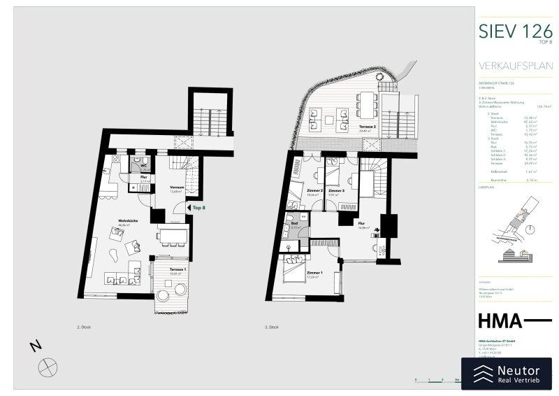 Diese stilvolle 4-Zimmer-Maisonettewohnung im 2. und 3. Stock eines modernen Wohnhauses im 19. Bezirk bietet ein einzigartiges Wohngefühl in absoluter Hof-Ruhelage. Mit ca. 125,04 m² Wohnfläche, zwei Terrassen und direktem Zugang zu einem Gemeinschaftsgarten vereint sie urbanen Komfort mit naturnaher Idylle. Lichtdurchflutete Räume, eine durchdachte Raumaufteilung und ein nachhaltiges Energiekonzept machen diese Wohnung zu einem exklusiven Rückzugsort.