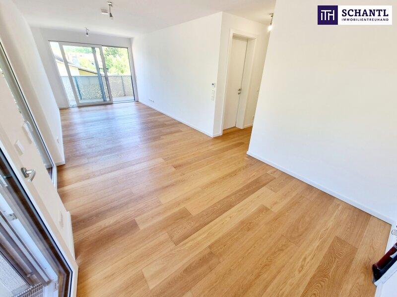 Zwischen Großstadt und Grashalm. Riesenbalkon / Riesenfreude! TOP Neubauwohnung mit viel Freiraum! Traumhafte Rundum-Terrasse + Ideale Raumaufteilung + Grün wohin das Auge reicht + Luftwärmepumpe!