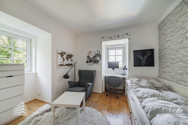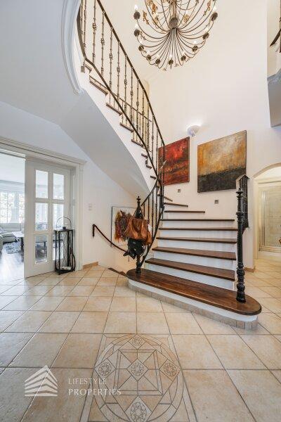 Das über 2.000 m² große Grundstück befindet sich in Eichgraben in der Nähe von Pressbaum. Das eindrucksvolle Anwesen im Altbaustil wurde im Jahr 2003 mit einer Nutzfläche von ca. 325 m² auf drei Etagen erbaut und 2023 modernisiert. Die Wandhöhe im Erdgeschoß beläuft sich auf ca. 2,9 m. Die Villa verfügt über insgesamt ca. 200 m² Terrassenfläche aus Naturstein, welche das Haus umgibt und sich bis um den traumhaften Pool spannt.