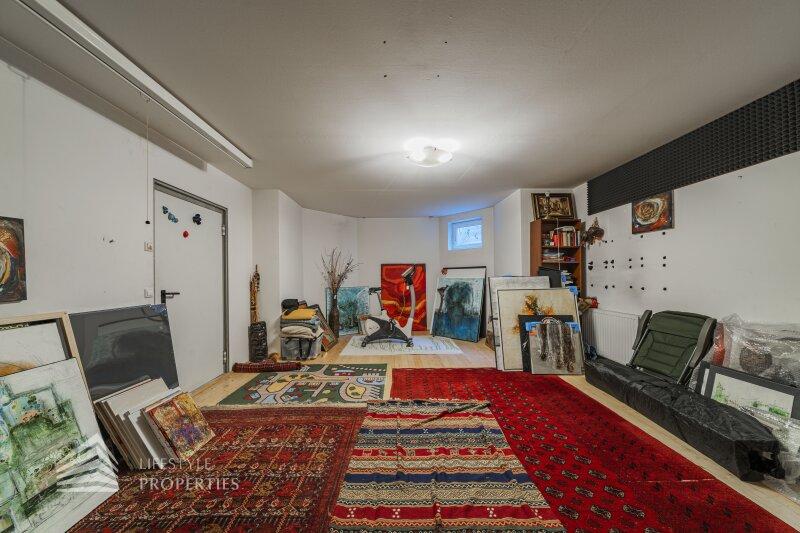 Komfortables Wohnen ist in diesem besonderen Haus durch modernste Technik gewährleistet. Es verfügt über eine Sicherheitseingangstüre und Videoüberwachung, sowie hochwertige, doppelverglaste Actual-Fenster. Beheizt wird mittels Pellets-Ofen und Fußbodenheizung. Die Villa ist mit geschmacksvollen Eichenparkettböden in den Wohnräumen und der Küche, sowie hochwertigen italienischen Feinsteinzeugfliesen in den Nassräumen und im Vorraum ausgestattet. Auch die maßgeschneiderten Türen überzeugen durch ihre Einzigartigkeit aus geschliffenem Glas und antiken Messingtürklinken. Das Kellergeschoß lässt Ihnen auf ca. 147 m² viel Raum bei der eigenen Gestaltung. Der Keller verfügt außerdem über eine zentrale Staubsaugeranlage, die dafür benötigten Anschlüsse sind in jedem Stockwerk vorhanden.