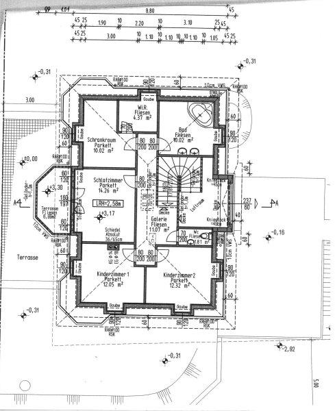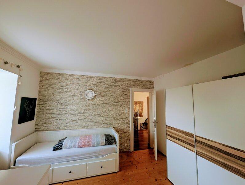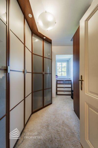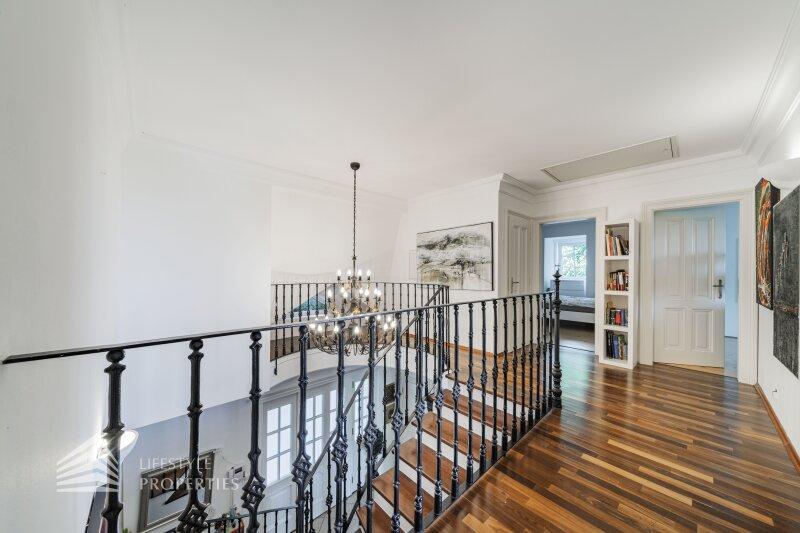 Über einen schönen Treppenaufgang gelangen Sie zunächst in die Galerie im ersten Stock, von wo aus die 3 Zimmer, ein Schrankraum, ein Badezimmer und ein WC zentral begehbar sind. Das ca. 14 m² große Hauptschlafzimmer verfügt über einen eigenen Balkon mit Fernblick ins Grüne. Die weiteren Zimmer mit Flächen von ca. 10-12 m² eignen sich ideal als Büro, Kinder- oder Gästezimmer. Einer der Räume ist momentan als Ankleide mit angrenzendem Waschraum eingerichtet. Das Bad lässt mit Whirlpoolbadewanne, Dusche und zwei Waschbecken keine Wünsche offen.