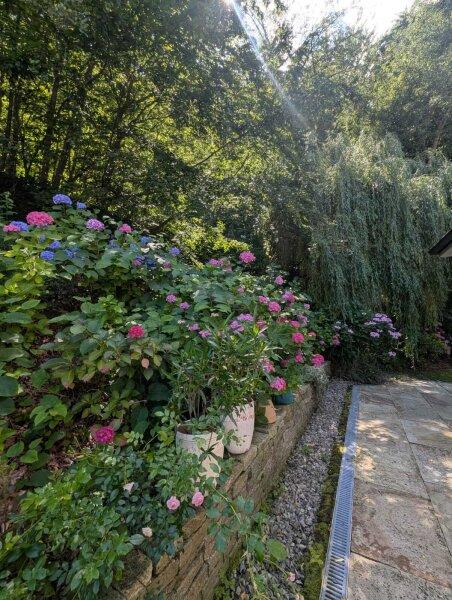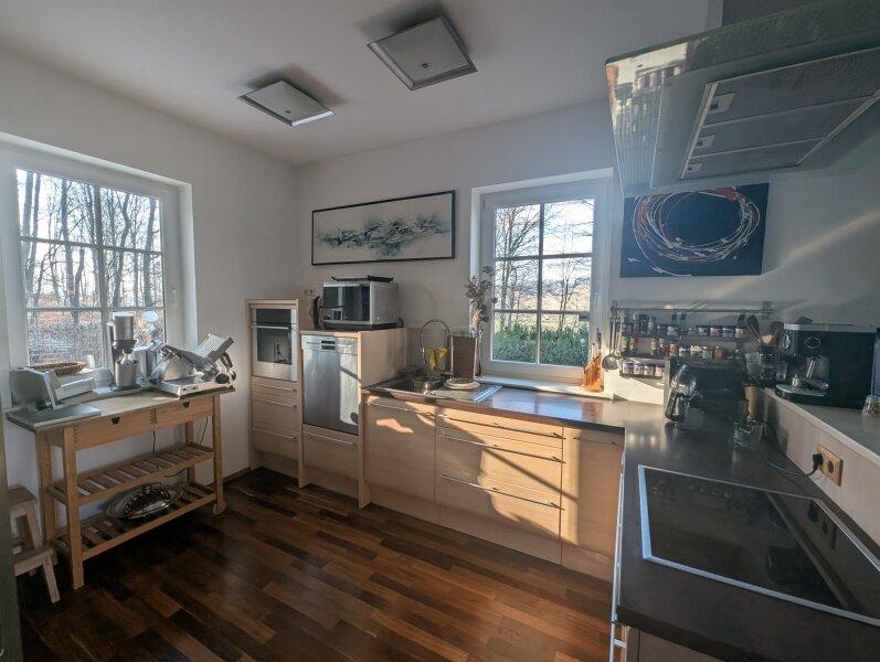 Zum Verweilen in den Sommermonaten lädt natürlich die Terrasse, aber vor allem der wunderschöne, von Lederleitner gestaltete Garten mit einem durch die Pelletheizung beheiztem Pool ein. Eine große Wiese bietet sich zum Entspannen, Spielen oder anderweitige Gestaltung an.