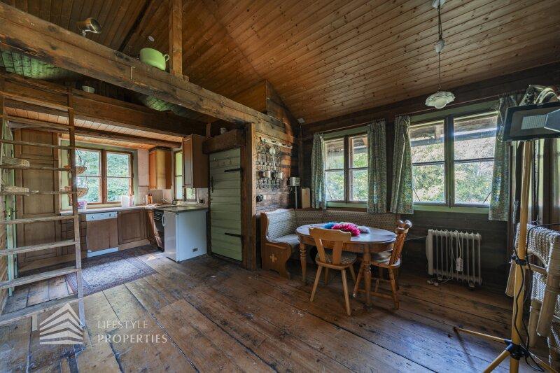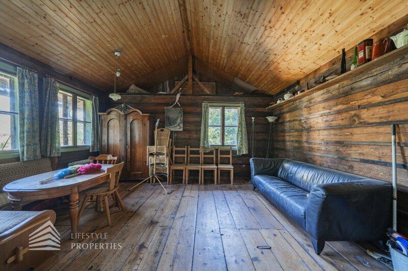 Das zum Verkauf stehende Anwesen erstreckt sich über drei Grundstücke mit einer gemeinsamen Grundfläche von 2.433 m², wovon 532 m² auf Waldfläche entfallen. Auf dem Grund befindet sich zudem eine ca. 55 m² große gemütliche Blockhütte, die mit Küchenzeile, Hochbett und Heizung ausgestattet ist und über eine Sanitärausstattung verfügt.