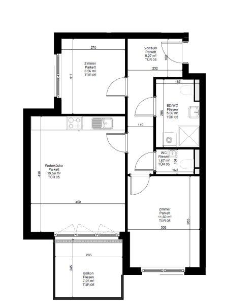 Zum Verkauf gelangt eine 3-Zimmer Wohnung mit Balkon im 22. Wiener Gemeindebezirk in der Nähe des Oberen Mühlwassers.