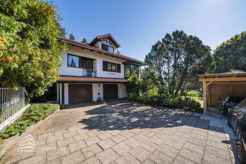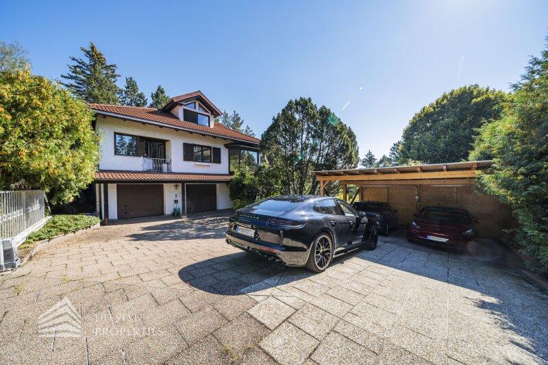 Die Zufahrt zum Haus führt über eine Privatstraße, diese in einer absolut verkehrsberuhigten Sackgasse am Waldrand liegt.