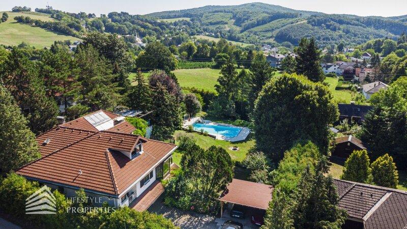 Zum Verkauf gelangt ein atemberaubendes Einfamilienhaus mit Pool in Sulz im Wienerwald in der Nähe von Wien.