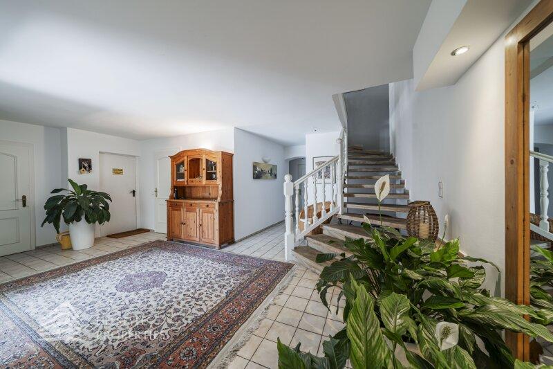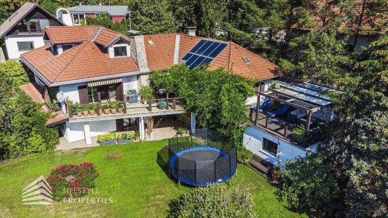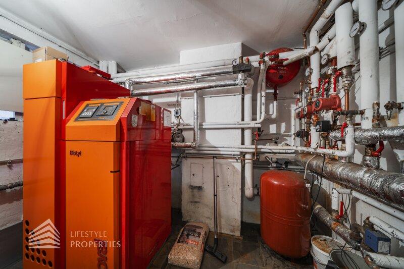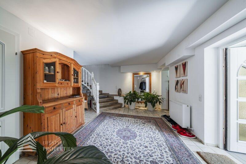 Auf einer Grundstücksfläche von ca. 2.660 m² wurde dieses imposante Familienhaus in ländlichem Design errichtet. Dank modernster Technik, beispielsweise des Einbaus einer Solaranlage und einem Wasserspeicher, der 1000l fasst, ist ein komfortables Wohnen mit niedrigen Betriebskosten gewährleistet. Das Haus wird teils mittels Fußbodenheizung erwärmt. Ein Kamin im Wohnzimmer sorgt für ein angenehmes Raumklima in den kühleren Monaten. All diese Annehmlichkeiten werden durch ein hochwertiges BUS-System, welches teilweise zur Anwendung kommt und zur Steuerung von Rollos und Licht dient, abgerundet. Auch die Holzfenster mit Isolierverglasung entstammen dem High-End-Segment und schützen dadurch optimal vor Lärm. Ausgestattet ist die Immobilie mit geschmackvollen Parkettböden in den Wohnräumen, Steinböden und Fliesen in den Nassräumen. Die Beiträge and die Gemeinde belaufen sich auf € 700 pro Quartal.