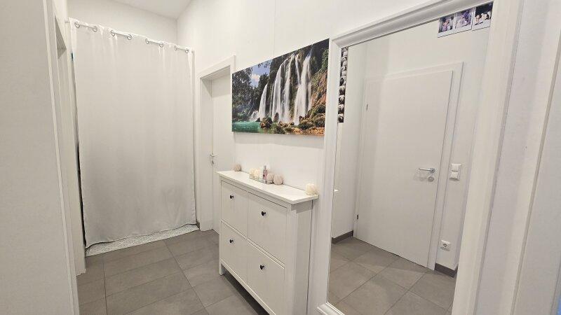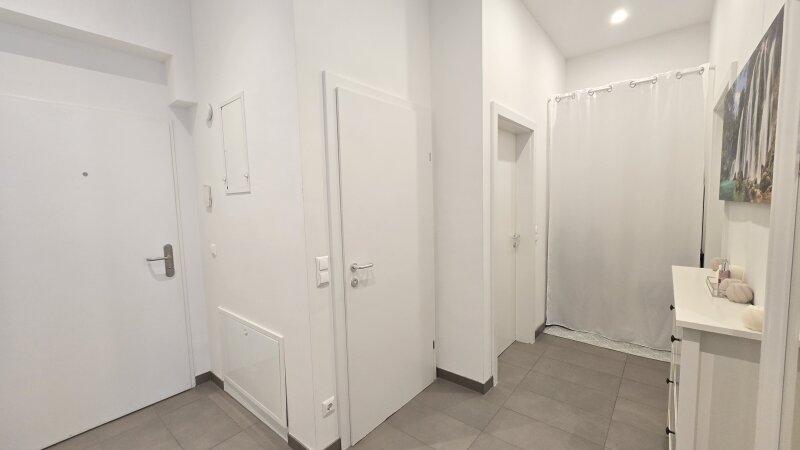 Barrierefrei mit sehr geräumigem Vorraum, angeschlossene stilvolle Raumkonzept erlaubt den Zugang vom Vorraum direkt in das lichtdurchflutete Wohnzimmer, Wohnküche, das Schlafzimmer. Weiters vom Vorraum gelangt man in das Bad mit Begehbaren Dusche und Extra Toilette mit Handwaschbecken, sowie ein klein Abstellraum.