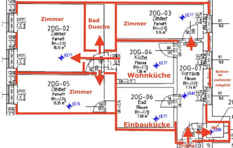 Achtung: Im Haus sind in Regelgeschoß auch andere Wohnungen zum Verkauf, man kann die Wohnungen zusammenlegen und somit ist möglich 2 bis 4 Zimmer Wohnung + Balkon/Terrasse zu machen.