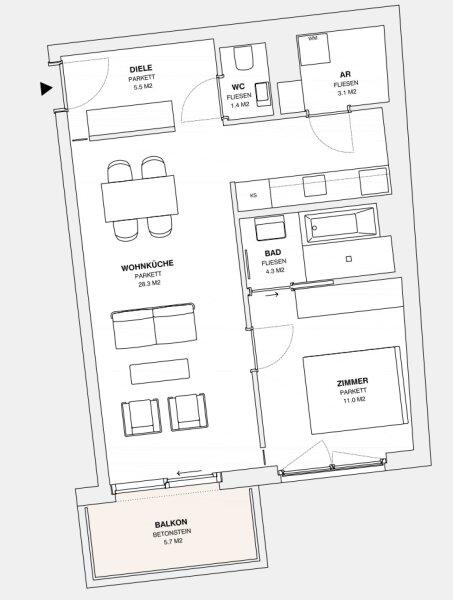 ++ Bei den hier dargestellten Fotos handelt es sich um ähnliche, bereits fertiggestellte Wohnungen des selben Projektentwicklers. Aktuelle Bilder des Projektes MOLLARD50 werden nächste Woche nachgereicht. Der dargestellte Plan/Grundriss ist der der tatsächlichen Wohnung +++