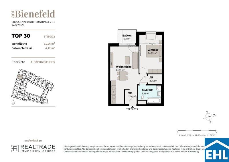 Hier stehen 83 attraktive, bereits bezugsfertige Wohnungen, umgeben von großzügigen Freiflächen, zum Verkauf. Ob mit einem gemütlichen Eigengarten, Balkon oder Terrasse diese neue Wohnhausanlage bietet für jeden Wunsch die perfekte Außenfläche.