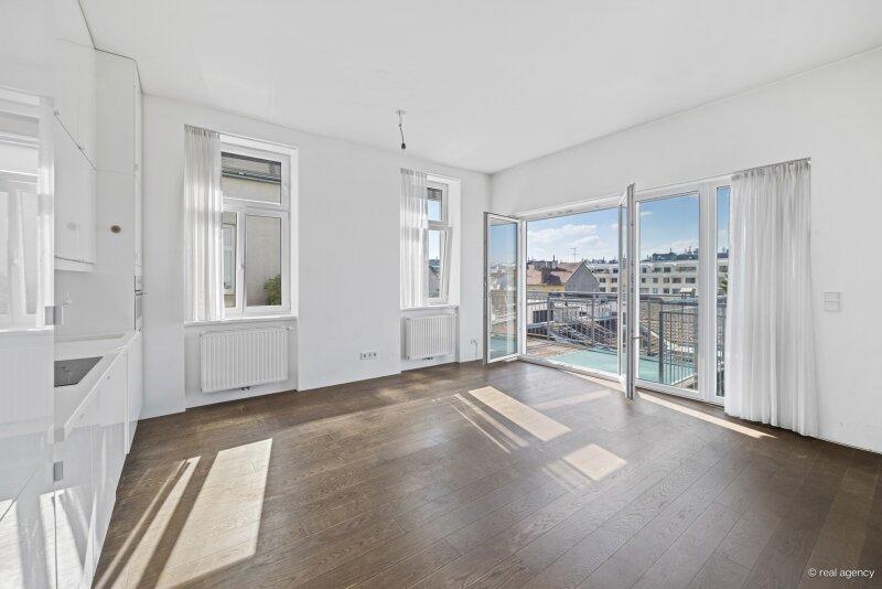 Diese außergewöhnliche Wohnung besticht durch einen traumhaften Aus-, bzw. Weitblick über die Dächer von Wien. Durch die westseitige Ausrichtung kann man die Sonne bis in die Abendstunden genießen.