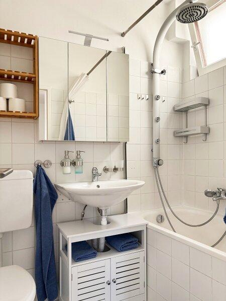 - Bad mit Tageslicht-Fenster, Badewanne samt Regendusche, Waschtisch und WC (ca. 3,1 m2)