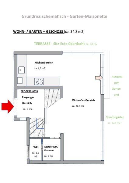 - Ausgang in den Garten (insgesamt ca. 150 m2) mit