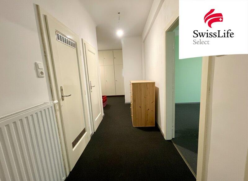 Ein großzügiger Vorraum heißt Sie willkommen und bietet mit den bestehenden Einbaukästen reichlich Stauraum ideal für Garderobe, Haushaltsutensilien oder als kleine Anrichtefläche.