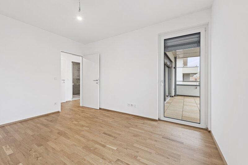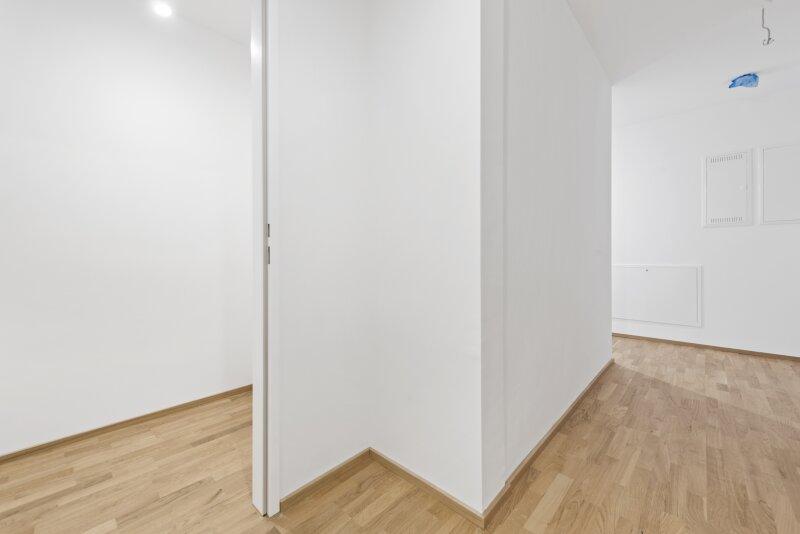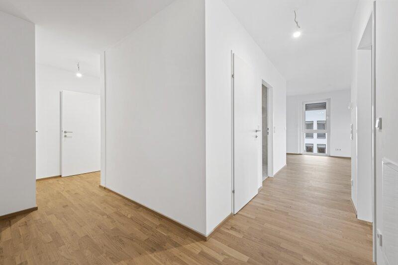 Fahrradabstellplätze, Kinderwagenraum, Spielplatz mit Pergola und Sitzmöglichkeiten sowie eine Tiefgarage vervollständigen das Angebot des durchdachten, modernen und nachhaltigen Projekts. Ein Tiefgaragenplatz ist zu erwerben (ab € 17.500,).