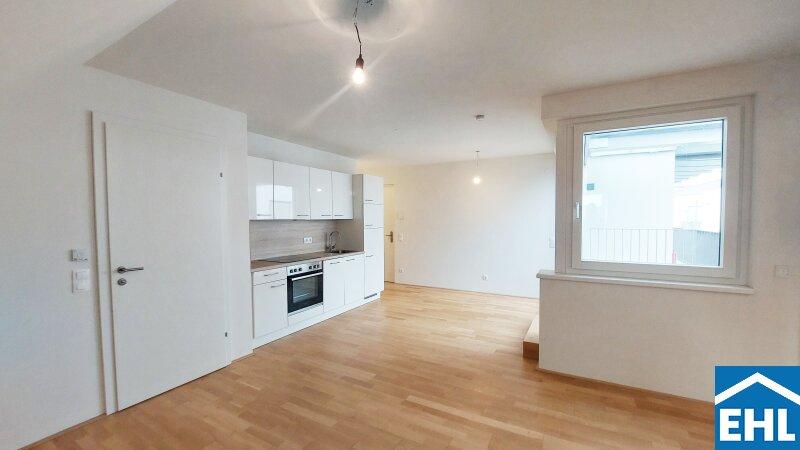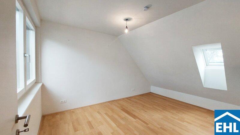 Die Wohnung selbst befindet sich im Dachgeschoß (mit Dachschrägen) und verfügt über eine Wohnküche, ein Schlafzimmer, ein Badezimmer mit Dusche, Waschmaschinenanschluss und WC, einen Abstellraum sowie einen Vorraum. Die Terrasse rundet das Wohnerlebnis perfekt ab.