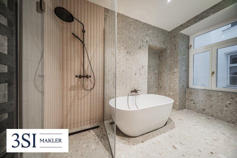 Das zweite Badezimmer überzeugt mit Badewanne, Walk-In-Dusche und WC ideal für entspannte Wellness-Momente. Abgerundet wird das Raumangebot durch ein separates WC sowie einen praktischen Abstellraum.