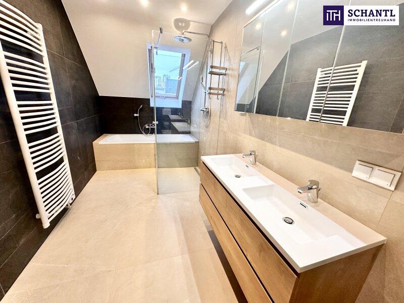 • Luxuriöses Badezimmer mit Badewanne, Dusche, WC und Tageslichtfenster