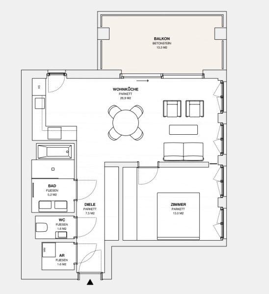 MOLLARD 50 presents itself as a modern new-build with three building sections and an underground garage. The architecture impresses with clean lines and thoughtful details, while the floor plans are designed with maximum flexibility and intelligent layouts. Spacious balconies, loggias, terraces, and garden areas extend the living space of nearly every apartment outdoors, creating a special quality of life.