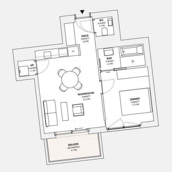 ++ Bei den hier dargestellten Fotos handelt es sich um ähnliche, bereits fertiggestellte Wohnungen des selben Projektentwicklers. Aktuelle Bilder des Projektes MOLLARD50 werden nächste Woche nachgereicht. Der dargestellte Plan/Grundriss ist der der tatsächlichen Wohnung +++