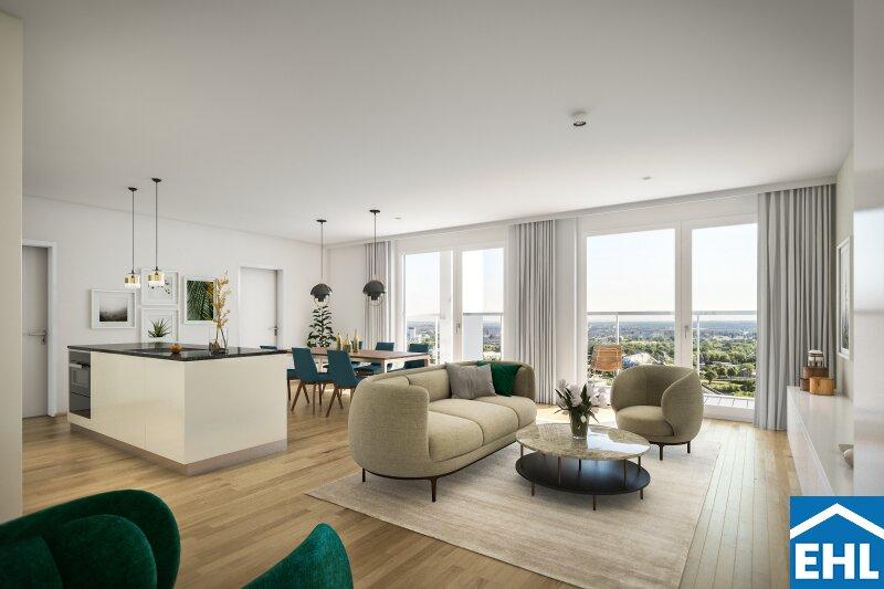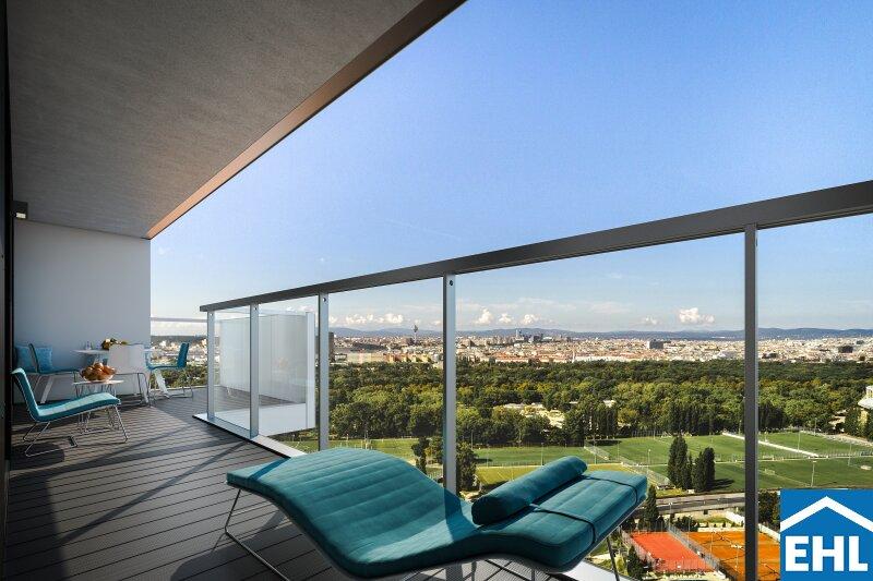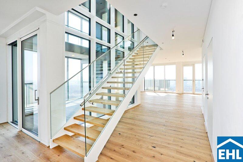 Auch die Sehnsucht nach üppigen Terrassen und Dachgärten wird gestillt - den Sternen so nah wie in keiner anderen Immobilie in ganz Wien.