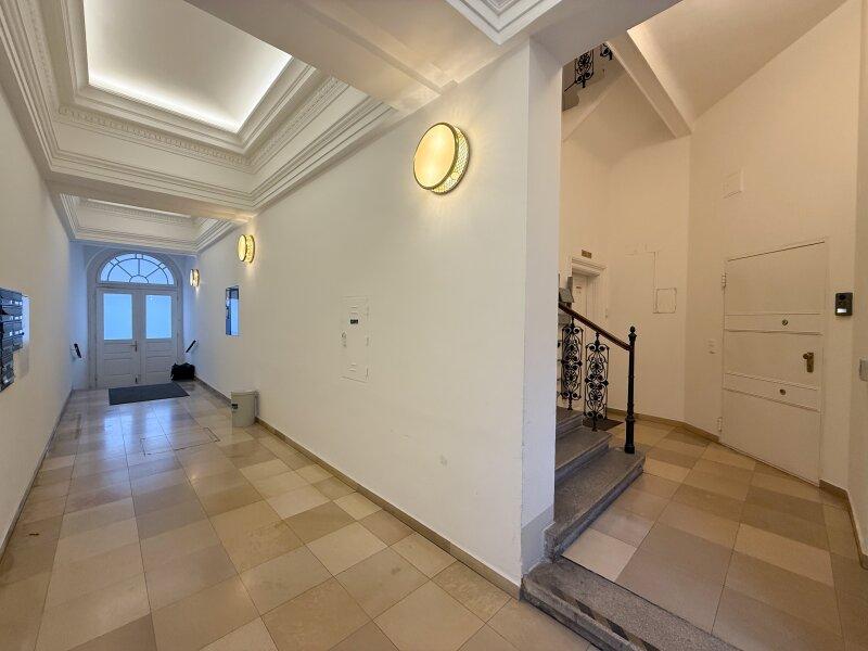 Altbau mit sanierter Fassade und gepflegtem Stiegenhaus